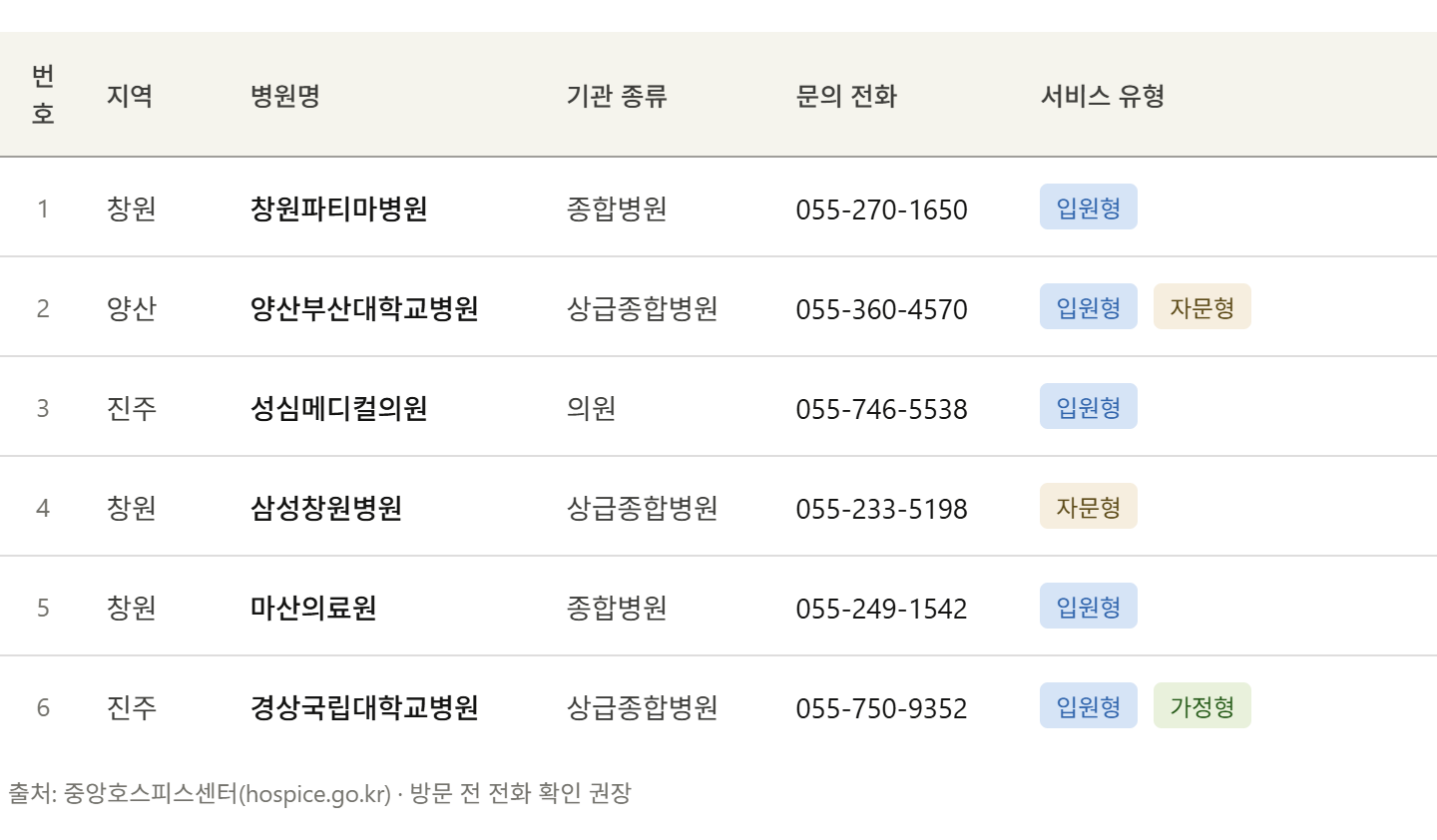 2026경남 호스피스 병원 리스트 — 진주·창원·양산 지역 한눈에 정리