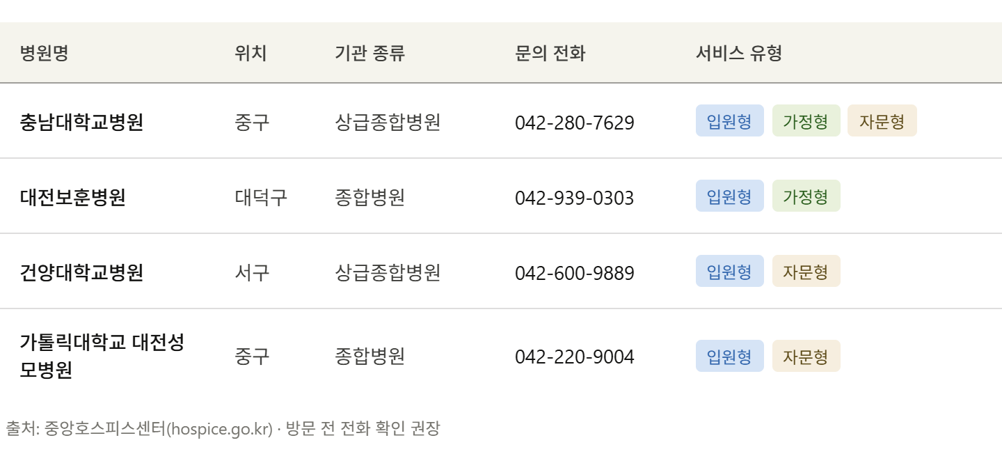 📌 대전 호스피스 병원 한눈에 보기